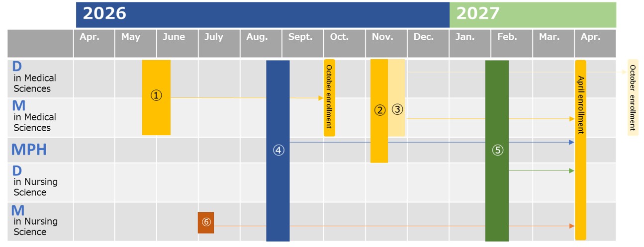 - ※2 Applicants for Doctoral Program in Medical Sciences in January to February Selection Process can choose April enrollment or October enrollment.